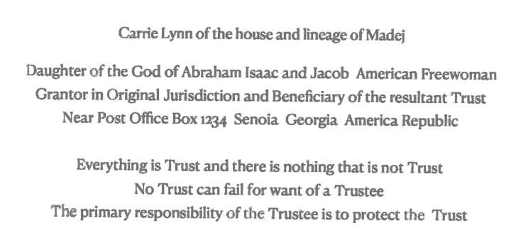 And when the courts requested Carrie Madej appear and defend herself against a wrongful death civil case, she claimed she wasn’t “Carrie Madej” per se, but rather she was “Carrie Lynn of the house and lineage of Madej” and was a “Daughter of the God of Abraham Isaac and Jacob.”